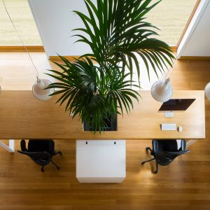 L´objectiu era dissenyar un despatx en una vivenda particular seguint les següents pautes: poder treballar de cara a l´exterior, tenir un espai comú de treball per a tota la família però que alhora cadascú tingués delimitat el seu espai, tenir gran capacitat d’emmagatzematge i fer una escala d’accés a l´altell que servís de zona de relax i lectura. Es va dissenyar una gran taula central de roure i potes metàl·liques en blanc de 4,43mts com a gran protagonista de l’espai. A la part central s’hi va col.locar un box amb calaixos que servia de separació física per a cada espai de treball i que alhora feia de jardinera per donar verticalitat. Es va dissenyar una gran escala de roure i es van aprofitar els baixos per a fer uns armaris per a la documentació més privada. Els tancaments del despatx es van fer a través d´unes grans llibreries que funcionaven per les dos cares i a través d´un gran finestral que conectava visualment el despatx amb la resta de la casa.