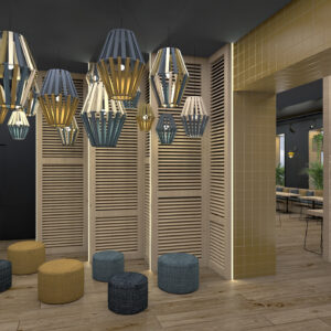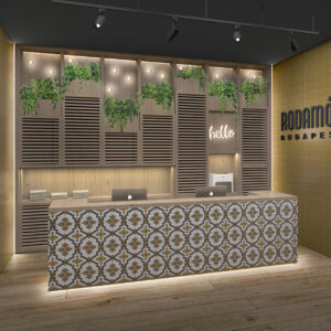 El nuevo Hostel Rodamón en Budapest se encuentra en lo que era una antigua fábrica de neones, situado a menos de 3 km del centro de la capital Húngara. El encargo consistía en diseñar la planta baja (vestíbulo, lobby, restaurante, baños y living) y las 5 plantas de habitaciones (dormitorios compartidos, suites, dormitorios familiares y apartamentos). Se siguió con la línea de los otros hostels de la cadena (madera de pino, azul corporativo, estructuras de hierro y cerámica), incorporando en este caso coloridos murales que recuerdan a los mosaicos cerámicos de los tejados que coronan los edificios más emblemáticos de la ciudad , así como la creación de neones que funcionan como señalética de zonas para hacer un guiño a los orígenes del edificio.an>