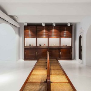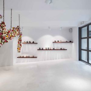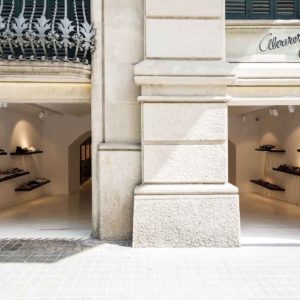La nueva zapatería Álvarez de la Rambla Cataluña, debía ser mucho más actual, pero manteniendo la esencia de la marca, aprovechando parte del mobiliario de madera del antiguo local. El local presentaba muchos desniveles y para evitar escalones y mejorar la accesibilidad, se niveló el espacio con rampas y espacios planos de exposición. La zona de la entrada y el antiguo escaparate se dejó abierta para invitar a entrar a la gente que paseaba por la calle. Para integrar los muebles antiguos en la nueva tienda, se hizo una caja neutra y se escogieron cuidadosamente los materiales. El pavimento fue una solera blanca de hormigón y en las paredes se colocó un papel de pared blanco con molduras, que recordaba el techo de la antigua tienda y a las típicas casas del ensanche. Para dar ligereza, se introdujo mimbre y luz inferior a las estanterías suspendidas y para aportar color se colgaron kokedamas y se creó un patio inglés ajardinado.